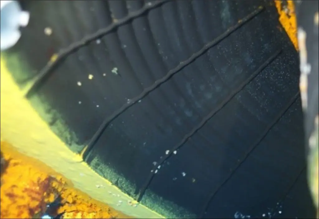 A surface elevation map was applied to the surface of the elastomeric compound to identify subtle anomalies. Aside from areas of residual marine growth, the analysis showed only uniform circumferential and radial elevations as expected.