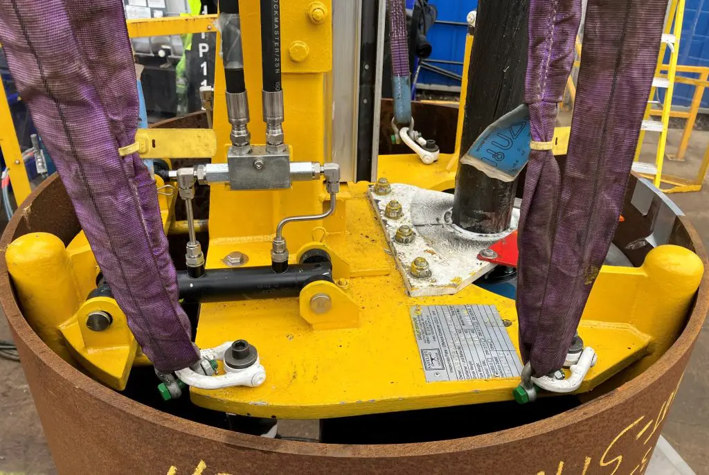 The hydraulic clamp system was designed for remote operation, enabling the tool to engage securely with the caisson wall without requiring personnel to be present at the work site, crucial for both safety and compliance.