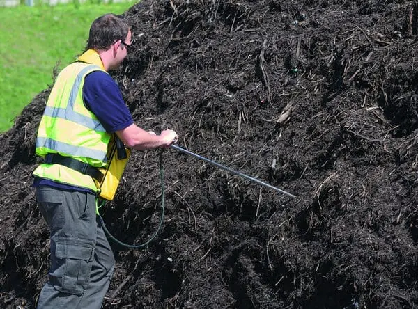 CompostManager consists of a portable probe and measurement system that records the key factors affecting composting efficiency: temperature, moisture, oxygen and carbon dioxide. Representative batches are measured in situ with a test that takes about one minute to perform, and barcoding ensures traceability of data. Collected data is then transferred to a PC and uploaded to a website which provides suggested management instructions such as ‘Turn’, ‘Irrigate’ and ‘Leave Alone.’ This ensures that unnecessary turning is avoided and that composting is as efficient and fast as possible, whilst minimising the production of bio-aerosols and odours. As well as demonstrating effective management practice, the system also produces PAS100 reports.